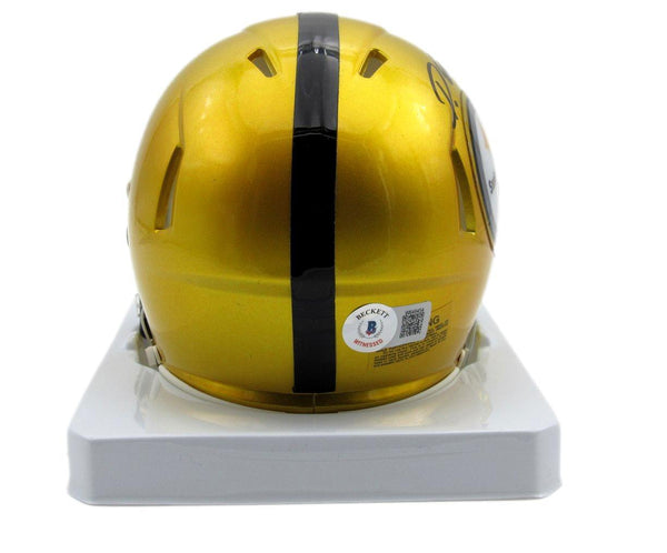 Diontae johnson autographed gold flash mini helmet pittsburgh steelers. this helmet is authenticated by bas/beckett and includes their tamper-proof sticker.