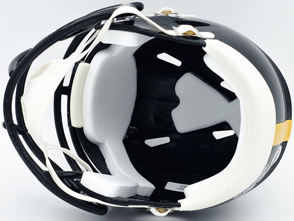 This is a Pittsburgh Steelers Black Speed Mini Helmet that has been hand signed by Hines Ward. There is an imperfection in the signature as shown. This item has been witnessed and certified authentic by Beckett Authentication (BAS) and comes with their tamper-proof witness hologram.