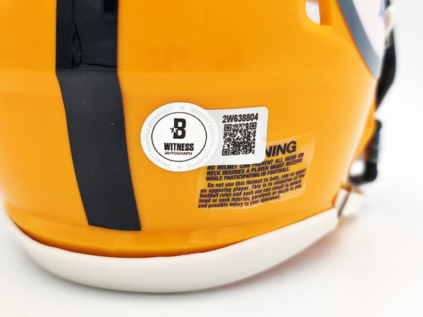 This is a Pittsburgh Steelers Throwback Gold Speed Mini Helmet that has been hand signed by Hines Ward. This item has been witnessed and certified authentic by Beckett Authentication (BAS) and comes with their tamper-proof witness hologram.