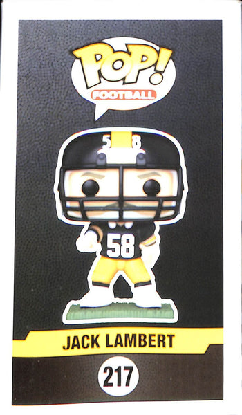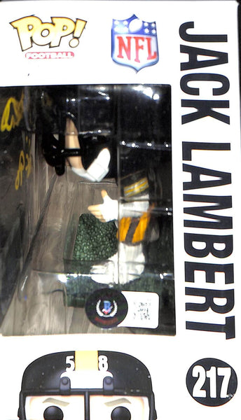 Jack Lambert Signed Pittsburgh Steelers Funko Pop! #217 Beckett 43210 The number in the listing title is just an inventory sku for our records and is not the authentication number. The item pictured is a stock photo unless otherwise noted. This is a Pittsburgh Steelers Funko Pop! #217 that was personally autographed by Jack Lambert. Includes a certificate of authenticity from Beckett Authentication Services (BAS) and Denver Autographs.