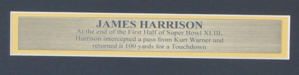 James Harrison Pittsburgh Steelers Signed/Autographed 16x20 Photo Framed. The outer frame size is 26 inches x 22 inches. This photo is authenticated by BAS/Beckett and includes their Tamper-proof Sticker and Certificate of Authenticity.