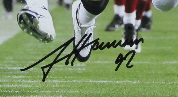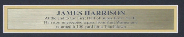 James Harrison Pittsburgh Steelers Signed/Autographed 8x10 Photo Collage Framed. The outer frame size is 14 inches x 23 inches. This photo is authenticated by BAS/Beckett and includes their Tamper-proof Sticker and Certificate of Authenticity.