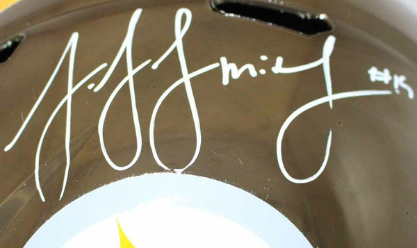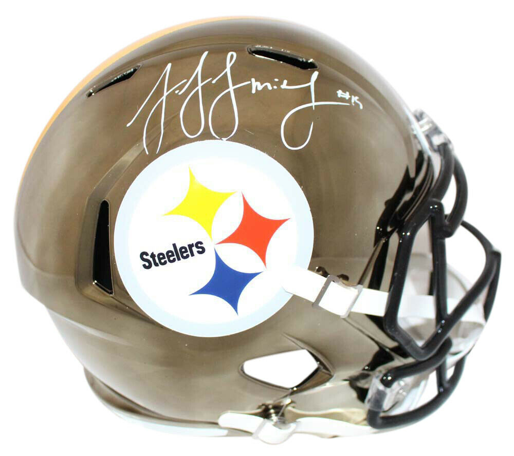 JuJu Smith-Schuster Signed Pittsburgh Steelers Chrome Replica Helmet BAS 24107 This is a Pittsburgh Steelers full size chrome replica helmet that was personally autographed by JuJu Smith-Schuster. This helmet includes a certificate of authenticity from Beckett Authentication Services (BAS) and Denver Autographs.