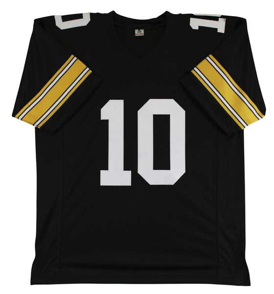 This Autographed Black Pro Style Jersey with the inscription of "Slash" has been Personally Signed by Kordell Stewart of the Pittsburgh Steelers. This item is 100% Authentic to include a hologram by Beckett Authentication Services. This item will come with an affixed Beckett Authentication Services (BAS) authentication sticker, which includes a scannable QR code to verify authenticity. Please note that Beckett no longer provides serial-numbered COA cards, and the attached BAS sticker will serve as the complete authentication for this item. This is a BAS Witnessed Protection Program item which means a Beckett Authentication Service representative was present when this item was being signed. We conducted an autograph signing with Kordell Stewart where multiples of the same item were signed. While the photographs are representative of this item, the size, placement and strength of the signature may vary. Each item is hand signed, therefore, each autograph is unique. This item can be verified through BAS Witnessed. This is a X-Large sized, non-branded, custom-stitched Jersey.