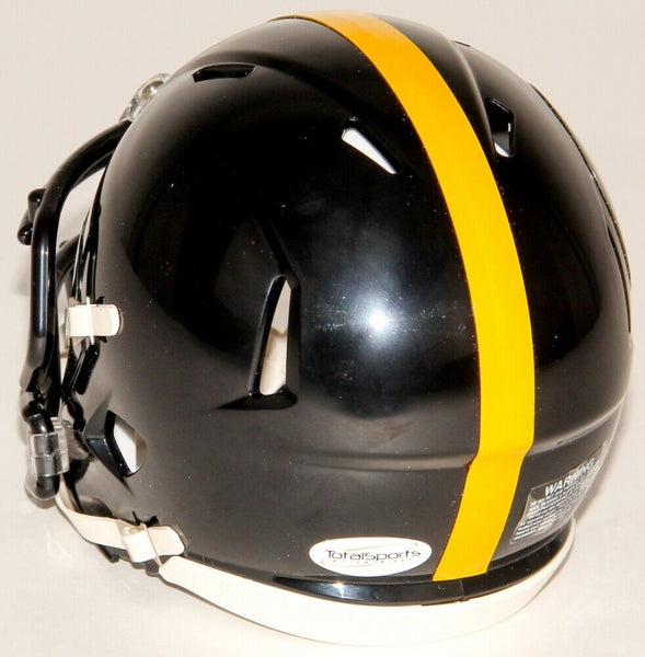 Pittsburgh Steelers mini speed helmet. Hand-signed in silver felt-tip pen by Le'Veon Bell.The lot / autograph(s) includes an official Total Sports Enterprises (TSE) hologram and matching COA for authenticity purposes.Authentication: Total Sports Enterprises COA