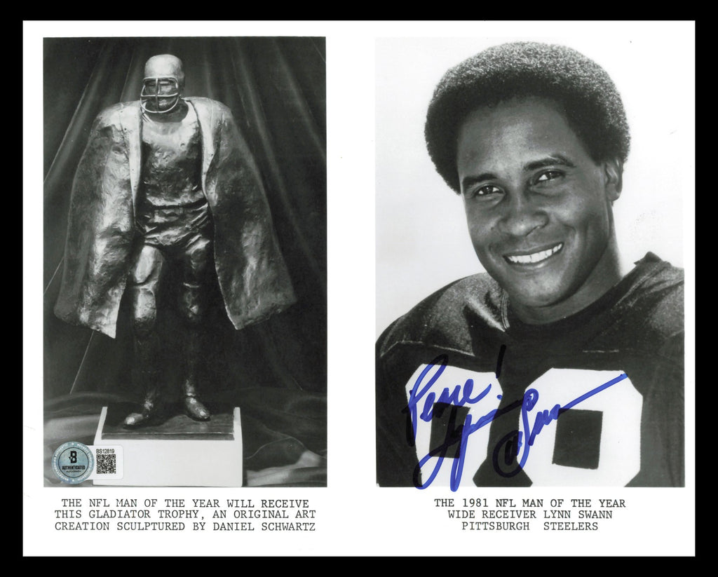 This is an 8x10 Photo that has been hand signed by Lynn Swann. There are creases in the item as shown. This item has been certified authentic by Beckett Authentication (BAS) and comes with their tamper-proof QR Code hologram.