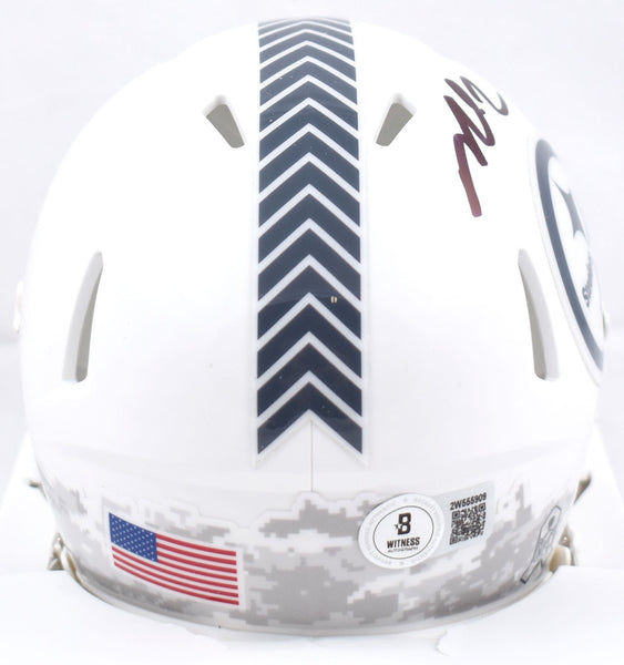 This is a hand autograph of Michael Vick of the Pittsburgh Steelers on a Riddell Football Salute to Service 2024 Speed Mini Helmet. This item has a Beckett Witnessed Authentication, which comes with a numbered hologram and a QR code for verification. You can view this item on the Beckett Authentication website and it shows when and where the item was signed. It was signed either at a public autograph appearance or a private signing. This is a stock photo of the item. Although you may not receive this exact item, the item you receive is virtually identical and brand new in great shape. This is a hand autograph of Michael Vick of the Pittsburgh Steelers on a Riddell Salute to Service 2024 Speed Mini Helmet. This item has a Beckett Witnessed Authentication, which comes with a numbered hologram and a QR code for verification. You can view this item on the Beckett Authentication website and it shows when and where the item was signed. It was signed either at a public autograph appearance or a private signing. This is a stock photo of the item. Although you may not receive this exact item, the item you receive is virtually identical and brand new in great shape.