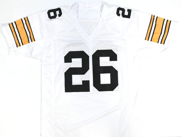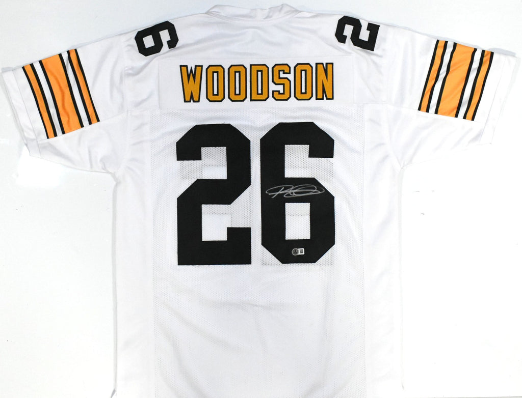 THIS IS NOT AN NFL JERSEY. THIS HAS NO TAGS, NO LOGOS, NO EMBLEMS. This is a hand autograph of Rod Woodson of the Pittsburgh Steelers on a Custom made (non-name brand) Authentic Style Jersey with stitched letters and numbers. This item has a Beckett Witnessed Authentication, which comes with a Beckett numbered sticker hologram and a QR Code for verification. You can view this item on the Beckett Authentication website. It was signed either at a public autograph appearance or a private signing. This is a stock photo of the item. Although you may not receive this exact item, the item you receive is virtually identical and brand new in great shape. Jersey size is XL. THIS IS NOT AN NFL JERSEY. THIS HAS NO TAGS, NO LOGOS, NO EMBLEMS. This is a hand autograph of Rod Woodson of the Pittsburgh Steelers on a Custom made (non-name brand) Authentic Style Jersey with stitched letters and numbers. This item has a Beckett Witnessed Authentication, which comes with a Beckett numbered sticker hologram and a QR Code for verification. You can view this item on the Beckett Authentication website. It was signed either at a public autograph appearance or a private signing. This is a stock photo of the item. Although you may not receive this exact item, the item you receive is virtually identical and brand new in great shape. Jersey size is XL.