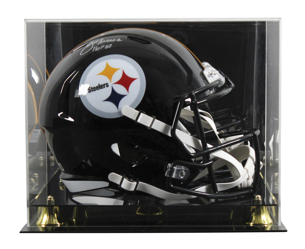 This Autographed Riddell Full Size Speed Rep Helmet W/ Uv Mirrored Back Acrylic Display Case with the inscription of "HOF 87" has been Personally Signed by Joe Greene of the Pittsburgh Steelers. This item is 100% Authentic to include a hologram by Beckett Authentication Services. This item will come with an affixed Beckett Authentication Services (BAS) authentication sticker, which includes a scannable QR code to verify authenticity. Please note that Beckett no longer provides serial-numbered COA cards, and the attached BAS sticker will serve as the complete authentication for this item. This is a BAS Witnessed Protection Program item which means a Beckett Authentication Service representative was present when this item was being signed. We conducted an autograph signing with Joe Greene where multiples of the same item were signed. While the photographs are representative of this item, the size, placement and strength of the signature may vary. Each item is hand signed, therefore, each autograph is unique. This item can be verified through BAS Witnessed.