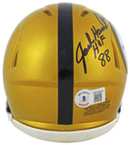 This Autographed Alternate Flash Speed Mini Helmet with the inscription of "HOF 88 (Ham), HOF 90 (Lambert)" has been Personally Signed by Jack Lambert, Jack Ham & Andy Russell of the Pittsburgh Steelers. This item is 100% Authentic to include a hologram by Beckett Authentication Services. This item will come with the new Beckett Authentication hologram that has a scannable QR code rather than the traditional COA. If you would like to have a COA, you are welcome to reach out to Beckett for a printed certification once you receive your item. This is a BAS Witnessed Protection Program item which means a Beckett Authentication Service representative was present when this item was being signed. The authenticity can be verified on Beckett Authentication Services website.