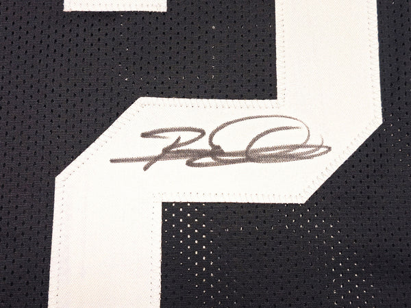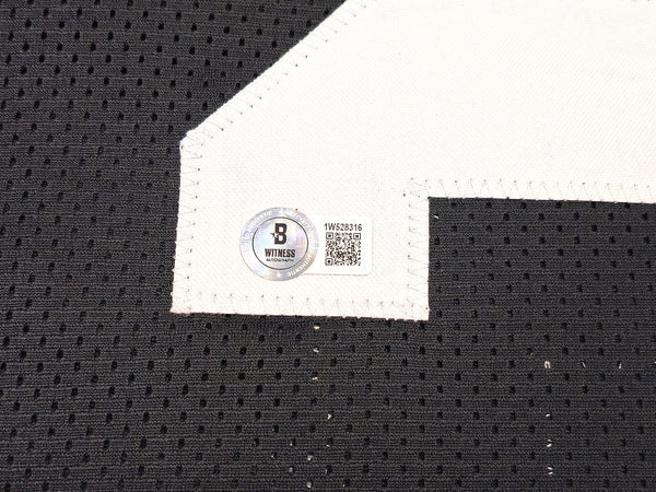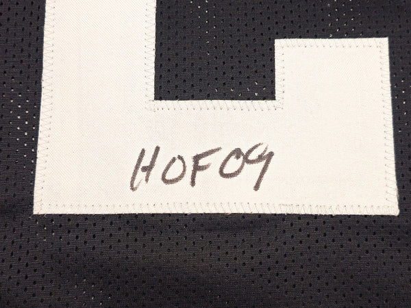 This is a Black Jersey that has been hand signed by Rod Woodson. This is a custom jersey with no name brand. The approximate size is XL. It has nice sewn in name and numbers. This item was inscribed "HOF 09." This item has been witnessed and certified authentic by Beckett Authentication (BAS) and comes with their tamper-proof witness sticker.