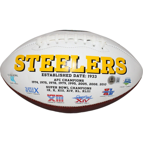 TJ Watt Autographed/Signed Pittsburgh Steelers Logo Football Beckett 43676 The number in the listing title is just an inventory sku for our records and is not the authentication number. The item pictured is a stock photo unless otherwise noted. This is a Pittsburgh Steelers White Logo Football that was personally autographed by TJ Watt. Includes a certificate of authenticity from Beckett Authentication Services (BAS) and Denver Autographs.
