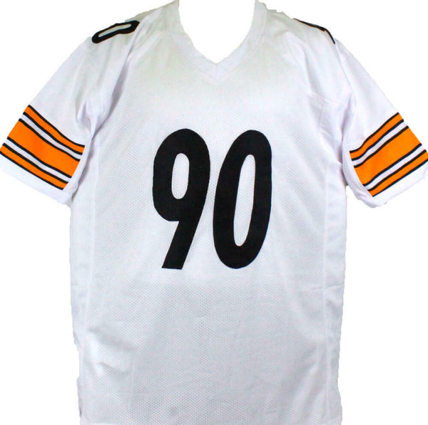 TJ Watt Autographed White Pro Style Jersey -Beckett W Hologram *Silver THIS IS NOT AN NFL JERSEY. THIS HAS NO TAGS, NO LOGOS, NO EMBLEMS. This is a hand autographed Jersey of TJ Watt. This is a Custom Made (non name brand) Authentic Style (stitched letters and numbers) Jersey. This item has a Beckett Witnessed Authentication, which comes with a numbered sticker hologram and a generic Beckett Certificate of Authenticity. You can view this item on the Beckett Authentication website. It was signed either at a public autograph appearance or a private signing. This is a stock photo of the item. Although you may not receive this exact item, the item you receive is virtually identical and brand new in great shape. Jersey size is XL.
