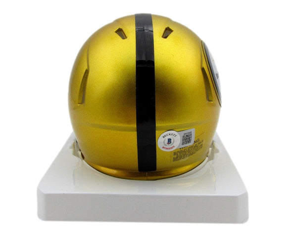 Troy Polamalu Signed Gold Mini Football Helmet Pittsburgh Steelers. This helmet is authenticated by BAS/Beckett and includes their Tamper-proof Hologram Sticker.