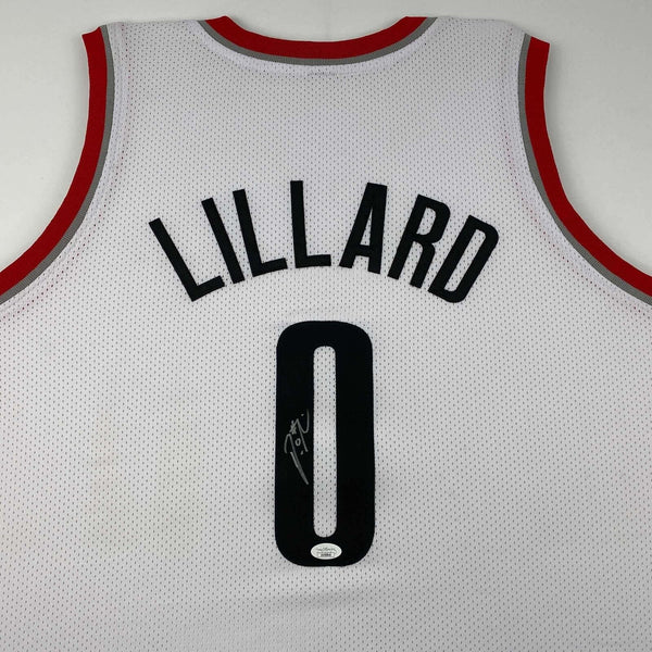 Autographed/Signed Damian Lillard Portland White Basketball Jersey JSA COA