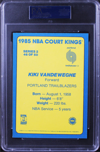 This Autographed 5x7 1985 Star NBA Court Kings #46 Card has been Personally Signed by Kiki Vandeweghe of the Portland Trail Blazers. This item is 100% Authentic, it comes slabbed and authenticated by PSA/DNA. The authenticity can be verified on Professional Sports Authenticator website.