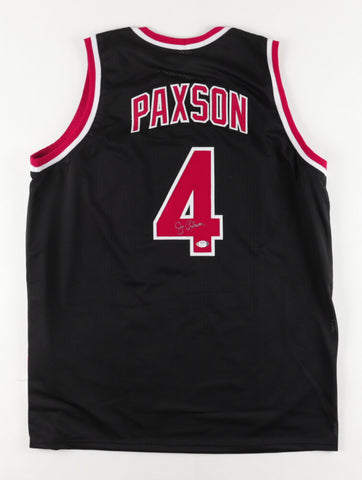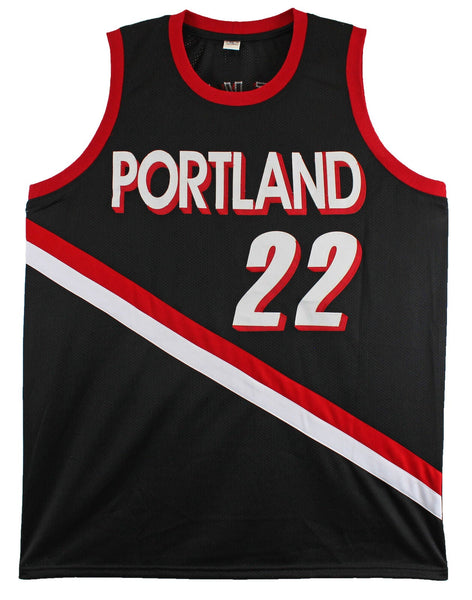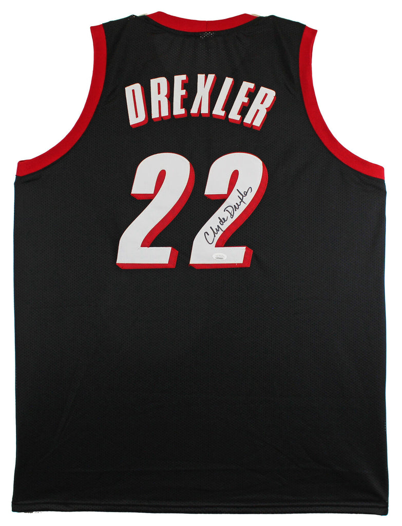This Autographed Black Pro Style Jersey has been Personally Signed by Clyde Drexler of the Portland Trail Blazers. This item is 100% Authentic to include a Certificate of Authenticity (COA) / hologram by JSA Witness. This is a JSA Witnessed Protection Program item which means a JSA representative was present when this item was being signed. We conducted an autograph signing with Clyde Drexler where multiples of the same item were signed. While the photographs are representative of this item, the size, placement and strength of the signature may vary. Each item is hand signed, therefore, each autograph is unique. This item can be verified through JSA Witness. This is a X-Large sized, non-branded, custom-stitched Jersey.