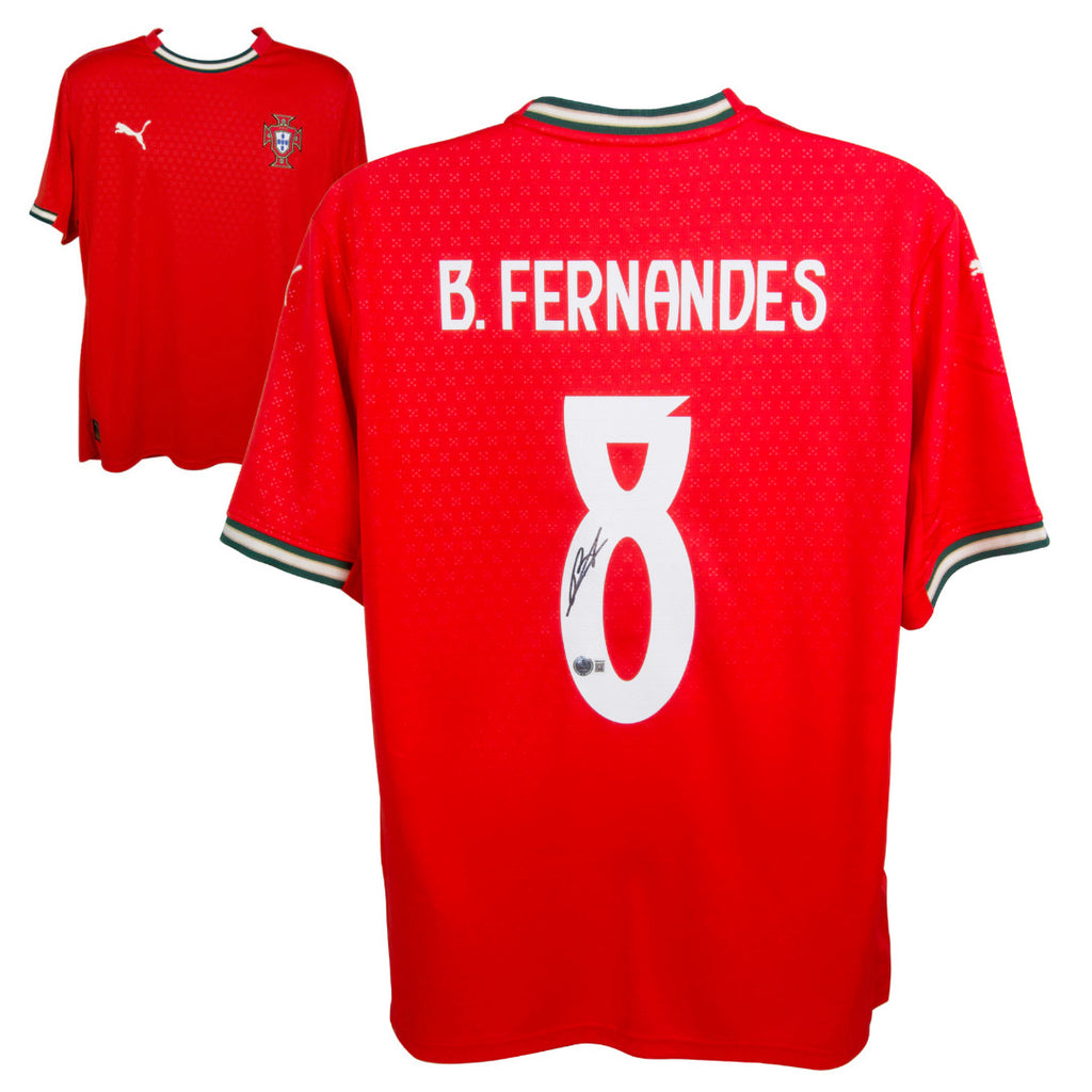 This is a Bruno Fernandes Signed Portugal FC Soccer Jersey #8 with Beckett Witness. THE ITEM IN THE PICTURE IS A STOCK IMAGE. YOU WILL RECEIVE AN IDENTICAL ITEM OF EQUAL QUALITY. ALL JERSEYS ARE SIZE LARGE. Every item of signed memorabilia we sell is official and of the highest quality. We pride ourselves on providing sports fans with the most exclusive signed memorabilia on the market. We are an industry leading signed memorabilia company who can guarantee 100% authenticity on every signature we sell. The item you receive will be identical to the one you are seeing in the stock pictures. This includes the item, the authentication company, signature color and signature placement. We take pride in ensuring the authenticity of all our items. With unwavering commitment, we guarantee that every signature is 100% authentic. Every item of signed memorabilia comes with a scannable barcode which takes you to the certificate of authenticity on the company's website. These industry leading authentication companies include Beckett Authentication Services, James Spencer Authentication Services and Professional Sports Authentication Services.