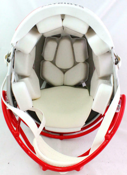 Randy Moss Autographed New England Patriots F/S Speed Authentic Helmet w/ Insc *front- Beckett W *Black This is a Randy Moss of the New England Patriots hand autographed Riddell Football Full Size Speed Authentic Helmet inscribed with "Straight Cash Homie". This item has a Beckett Witnessed Authentication, which comes with a numbered sticker and a matching Beckett Certificate of Authenticity. You can view this item on the Beckett Authentication website. It was signed either at a public autograph appearance or a private signing. This is a stock photo of the item. Although you may not receive this exact item, the item you receive is virtually identical, brand new, and in great shape.