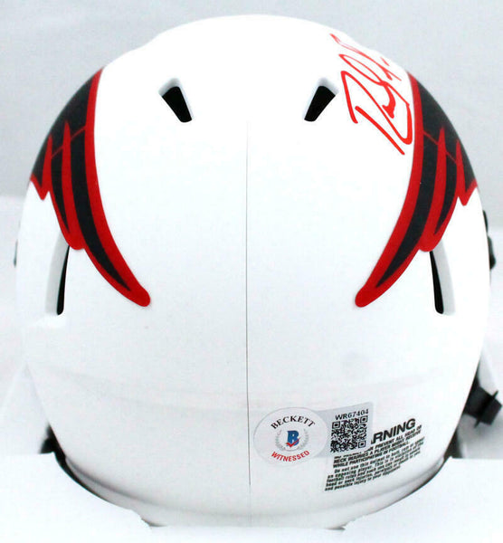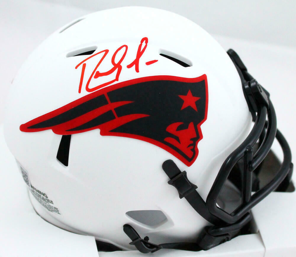 Randy Moss Autographed Patriots Lunar Speed Mini Helmet-Beckett W Hologram *Red This is a Randy Moss of the New England Patriots hand autographed Riddell Football Lunar Speed Mini Helmet. This item has a Beckett Witnessed Authentication, which comes with a numbered sticker hologram and a QR code for verification. You can view this item on the Beckett Authentication website. It was signed either at a public autograph appearance or a private signing. This is a stock photo of the item. Although you may not receive this exact item, the item you receive is virtually identical, brand new, and in great shape.
