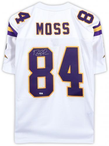 Randy Moss HOF Autographed Mitchell & Ness White Football Jersey Minnesota Vikings Size 44(L). This jersey is authenticated by Fanatics Authentic and includes their Tamper-proof Sticker and Certificate of Authenticity.