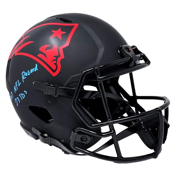 Randy Moss Patriots Signed 2007 NFL Rec 23 TDs Insc Eclipse Authentic Helmet BAS