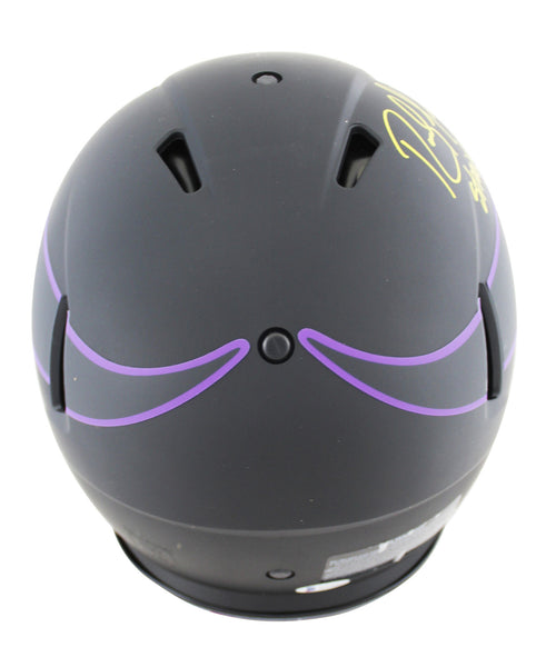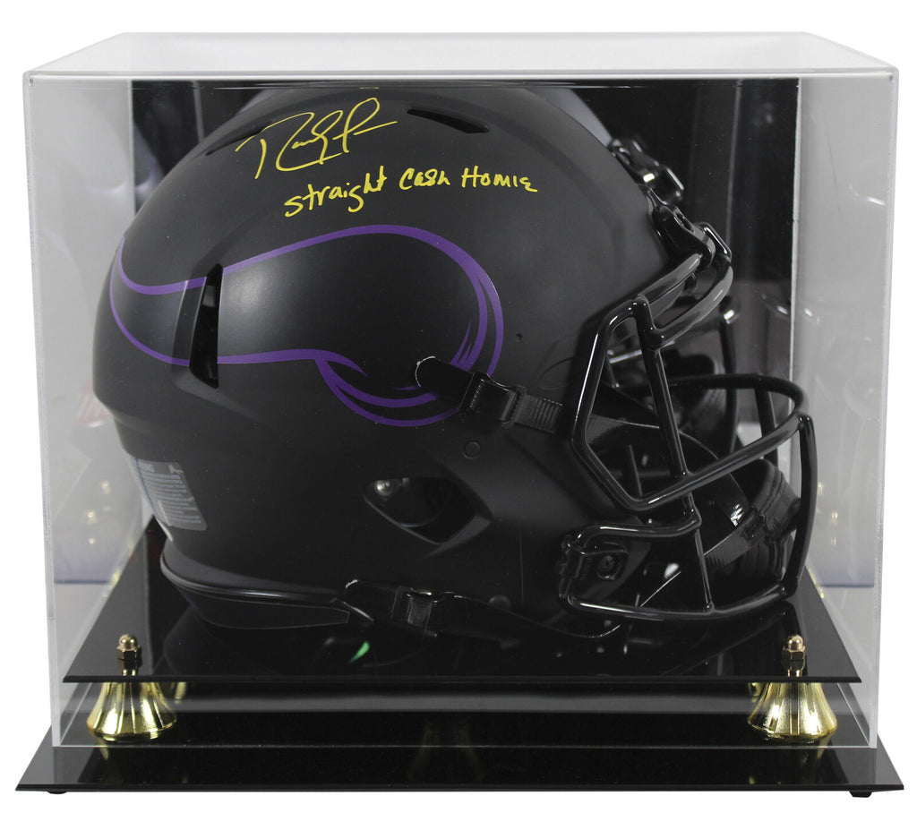 This Autographed Alternate Eclipse Riddell Full Size Speed Proline Helmet W/ Uv Mirrored Back Acrylic Display Case with the inscription of "Straight Cash Homie" has been Personally Signed by Randy Moss of the Minnesota Vikings. This item is 100% Authentic to include a Certificate of Authenticity (COA) / hologram by Beckett Authentication Services. This is a BAS Witnessed Protection Program item which means a Beckett Authentication Service representative was present when this item was being signed. We conducted an autograph signing with Randy Moss where multiples of the same item were signed. While the photographs are representative of this item, the size, placement and strength of the signature may vary. Each item is hand signed, therefore, each autograph is unique. This item can be verified through BAS Witnessed.