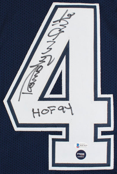 Custom on-field style jersey, everything sewn on. Jersey has been hand-signed in black paint pen by Randy White (HOF). White played professionally for the Dallas Cowboys from 1975 to 1988. He is a member of the College Football Hall of Fame, the Pro Football Hall of Fame and the Delaware Sports Museum and Hall of Fame.The lot / autograph(s) includes an official Beckett Authentication Services serially-numbered hologram and QR Code card for authenticity purposes. The signing of this item was witnessed by Beckett.Authentication: Beckett QR Code card