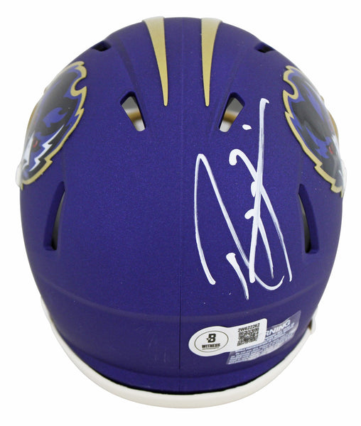 This Autographed 2024 On-Field Alternate Speed Mini Helmet has been Personally Signed by Ray Lewis of the Baltimore Ravens. This item is 100% Authentic to include a hologram by Beckett Authentication Services. This item will come with an affixed Beckett Authentication Services (BAS) authentication sticker, which includes a scannable QR code to verify authenticity. Please note that Beckett no longer provides serial-numbered COA cards, and the attached BAS sticker will serve as the complete authentication for this item. This is a BAS Witnessed Protection Program item which means a Beckett Authentication Service representative was present when this item was being signed. We conducted an autograph signing with Ray Lewis where multiples of the same item were signed. While the photographs are representative of this item, the size, placement and strength of the signature may vary. Each item is hand signed, therefore, each autograph is unique. This item can be verified through BAS Witnessed.