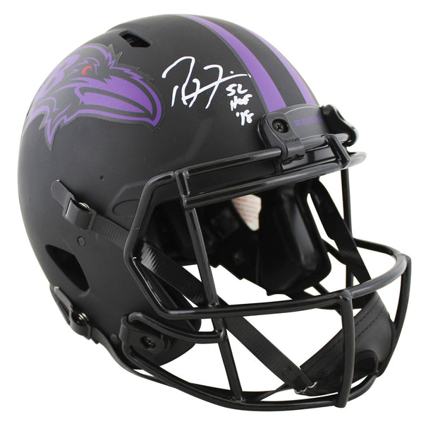 This Autographed Alternate Eclipse Riddell Authentic Full Size Speed Proline Helmet with the inscription of "HOF 18 (Lewis), HOF 19 (Reed)" has been Personally Signed by Ray Lewis & Ed Reed of the Baltimore Ravens. This item is 100% Authentic to include a Certificate of Authenticity (COA) / hologram by Beckett Authentication Services. This is a BAS Witnessed Protection Program item which means a Beckett Authentication Service representative was present when this item was being signed. This is a stock item. We conducted an autograph signing with Ray Lewis & Ed Reed and we have several of these available. The one you will receive will be of equal quality to the one pictured. This item can be verified through BAS Witnessed.