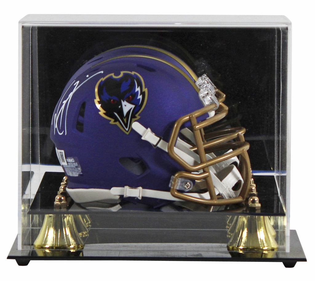 This Autographed 2024 On-Field Alternate Speed Mini Helmet W/ Uv Mirrored Back Acrylic Display Case has been Personally Signed by Ray Lewis of the Baltimore Ravens. This item is 100% Authentic to include a hologram by Beckett Authentication Services. This item will come with an affixed Beckett Authentication Services (BAS) authentication sticker, which includes a scannable QR code to verify authenticity. Please note that Beckett no longer provides serial-numbered COA cards, and the attached BAS sticker will serve as the complete authentication for this item. This is a BAS Witnessed Protection Program item which means a Beckett Authentication Service representative was present when this item was being signed. We conducted an autograph signing with Ray Lewis where multiples of the same item were signed. While the photographs are representative of this item, the size, placement and strength of the signature may vary. Each item is hand signed, therefore, each autograph is unique. This item can be verified through BAS Witnessed.