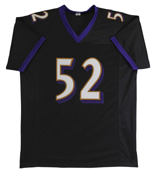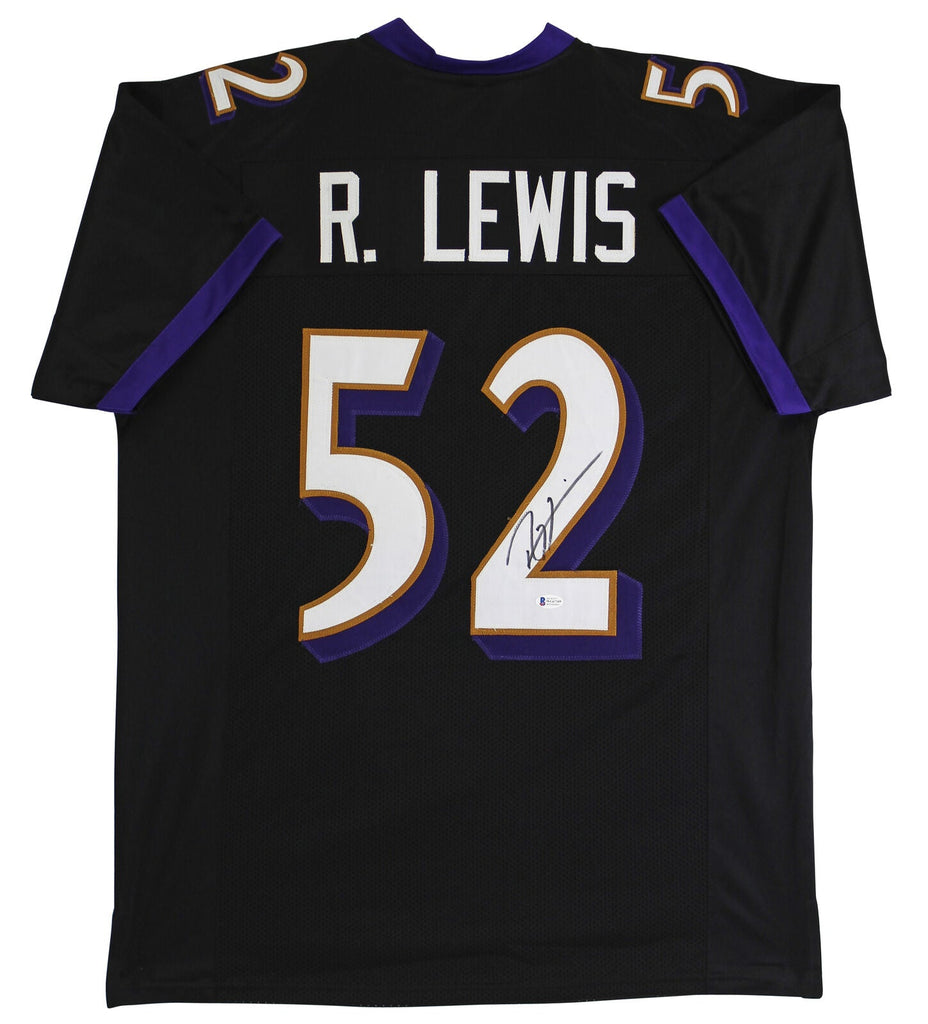 This black Jersey has been signed by Ray Lewis of the Baltimore Ravens. It will include the PSA/DNA numbered hologram and matching Certificate of Authenticity. This item is a Beckett Witnessed or PSA In The Presence item, which means the BAS or PSA representative was present when this item was being signed. This is a size XL custom stitched non-branded jersey. This is a stock item. We conducted an autograph signing with Ray Lewis and we have several of these available. The one you will receive will be of equal quality to the one pictured.