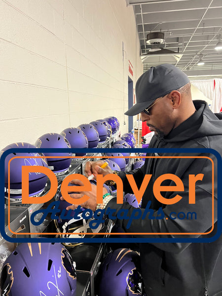 The number in the listing title is just an inventory sku for our records and is not the authentication number. This is a stock photo, unless otherwise noted. This is a Baltimore Ravens Full Size Replica 2024 Alternate Helmet that was personally autographed by Ray Lewis. Includes a certificate of authenticity from Beckett Authentication Services (BAS) and Denver Autographs.