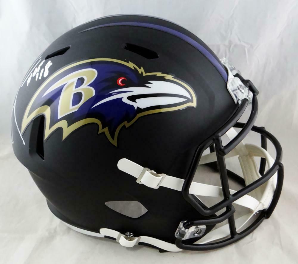 Ray Lewis Autographed Ravens F/S Flat Black Helmet W/ HOF- Beckett Auth *Silver This is a Hand Autograph of Ray Lewis of the Baltimore Ravens on a Riddell Football Full Size Flat Black Speed Replica Helmet and signed with his full name. This item has a Beckett Witness Authentication, which comes with a Beckett numbered and a matching Certificate of Authenticity. You can view this item on the Beckett website, it shows when and where the item was signed. It was signed either at a public autograph appearance or a private signing. This is a stock photo of the item. Although you may not receive this exact item, the item you receive is virtually identical and brand new in great shape.