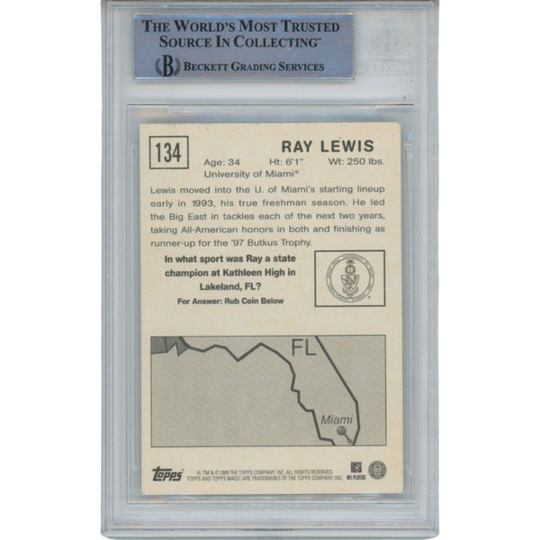 The number in the listing title is just an inventory sku for our records and is not the authentication number. The item pictured is the exact item you will receive, please see photos for condition. This is a 2009 Topps Magic #134 Slabbed Topps Trading Card that was personally autographed by Ray Lewis. Includes a certificate of authenticity from Beckett Authentication Services (BAS) and Denver Autographs.FREE SHIPPING within the USA on orders over $10!