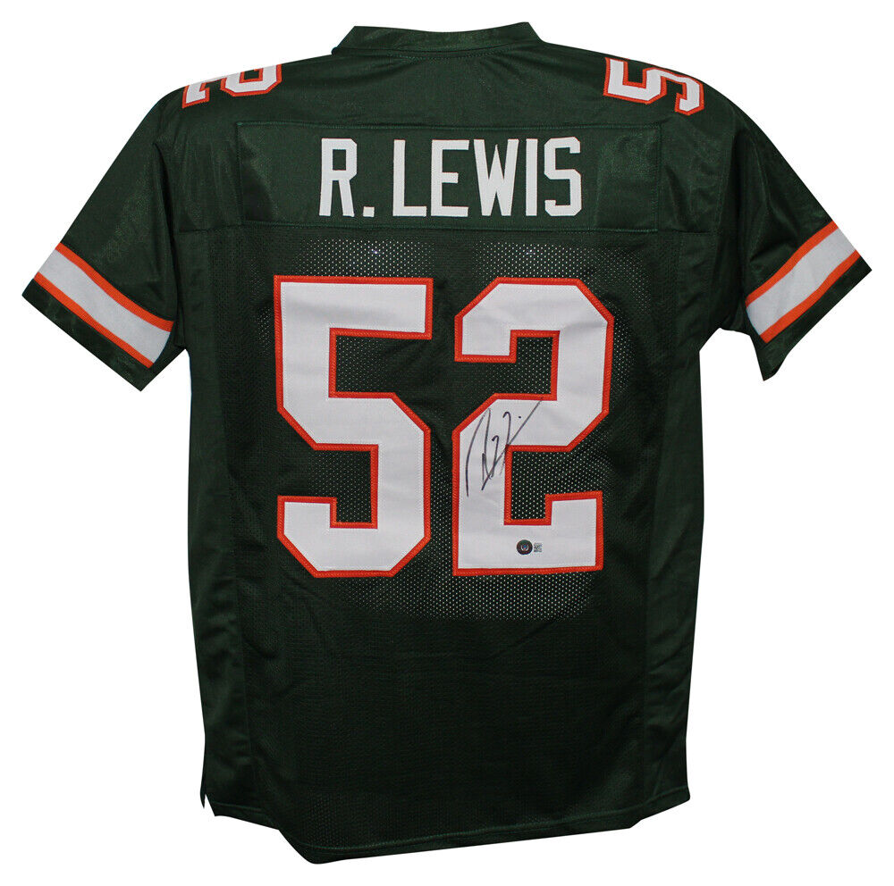 Ray Lewis Autographed/Signed College Style Green XL Jersey Beckett 36496 The number in the listing title is just an inventory sku for our records and is not the authentication number. The item pictured is a stock photo unless otherwise noted. This is a custom college style green XL jersey with sewn on name and numbers that was personally autographed by Ray Lewis. Includes a certificate of authenticity from Beckett Authentication Services (BAS) and Denver Autographs.