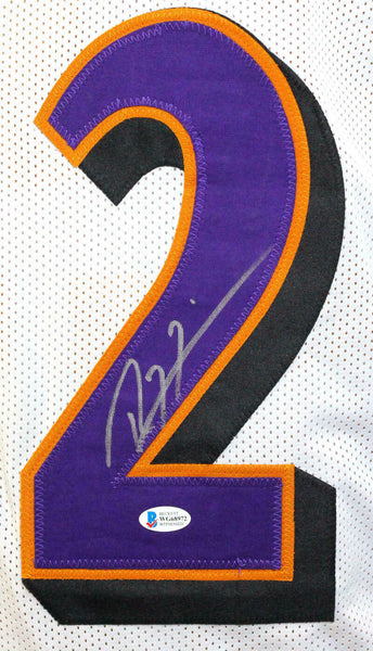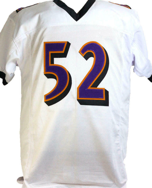 Ray Lewis Autographed White Pro Style STAT2 Jersey - Beckett W Auth *2 THIS IS NOT AN NFL JERSEY. THIS HAS NO TAGS, NO LOGOS, NO EMBLEMS. This is a hand autograph of Ray Lewis on a Custom Made (non name brand) Authentic Style Jersey with stitched letters and numbers. This item has a Beckett Witnessed Authentication, which comes with a numbered sticker and a matching Beckett Certificate of Authenticity. You can view this item on the Beckett Authentication website. It was signed either at a public autograph appearance or a private signing. This is a stock photo of the item. Although you may not receive this exact item, the item you receive is virtually identical and brand new in great shape. Jersey size is XL.