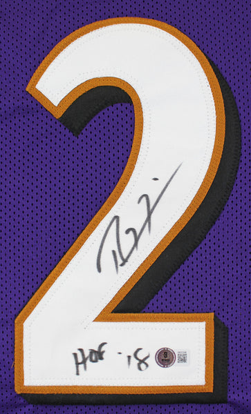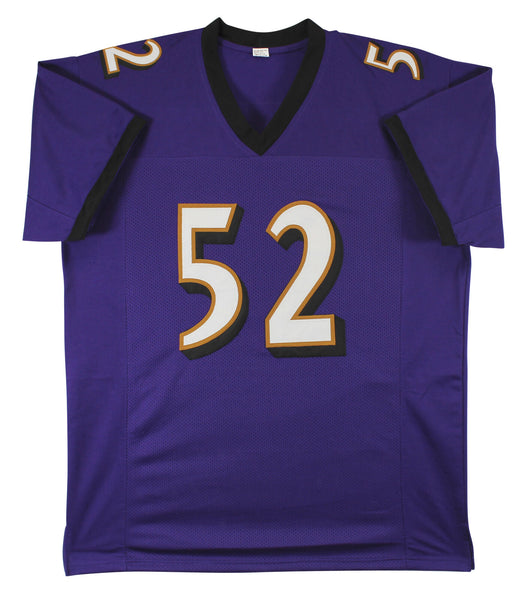 This Autographed Purple Pro Style Jersey with the inscription of "HOF 18" has been Personally Signed by Ray Lewis of the Baltimore Ravens. This item is 100% Authentic to include a hologram by Beckett Authentication Services. This item will come with an affixed Beckett Authentication Services (BAS) authentication sticker, which includes a scannable QR code to verify authenticity. Please note that Beckett no longer provides serial-numbered COA cards, and the attached BAS sticker will serve as the complete authentication for this item. This is a BAS Witnessed Protection Program item which means a Beckett Authentication Service representative was present when this item was being signed. The authenticity can be verified on Beckett Authentication Services website. This is a X-Large sized, non-branded, custom-stitched Jersey.