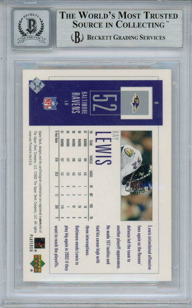 Ray Lewis Signed 2002 Upper Deck Piece Of History #8 Card BAS 10 Slab 35242