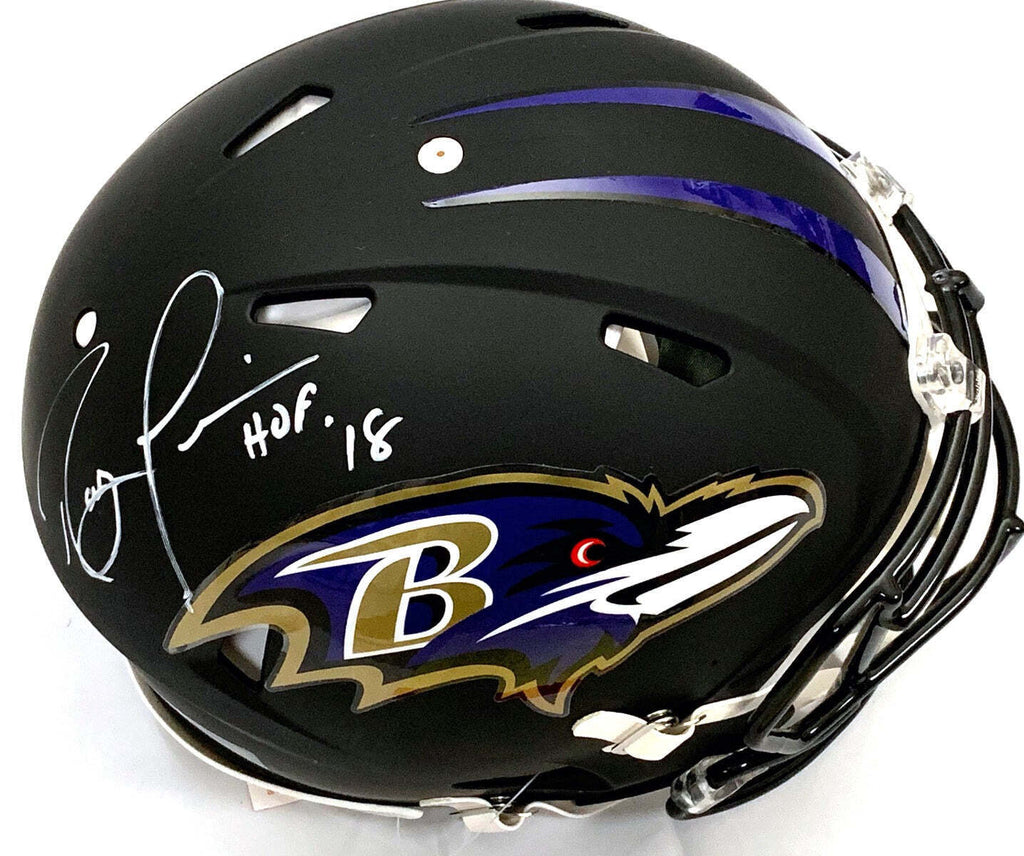 Ray Lewis Signed Baltimore Ravens Black Replica Helmet W/HOF 18 Beckett Witness