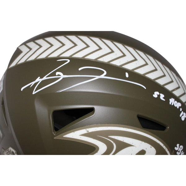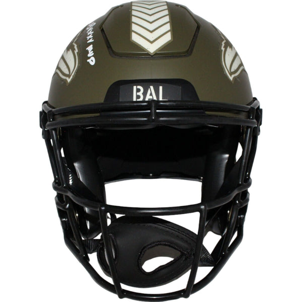 Ray Lewis Signed Baltimore Ravens Salute SpeedFlex Helmet BAS 42750 The number in the listing title is just an inventory sku for our records and is not the authentication number. The item pictured is a stock photo unless otherwise noted. This is a Baltimore Ravens 2022 Salute to Service Authentic Speed Flex Helmet that was personally autographed by Ray Lewis with "HOF 18" and "SB MVP" inscriptions. Includes a certificate of authenticity from Beckett Authentication Services (BAS) and Denver Autographs.