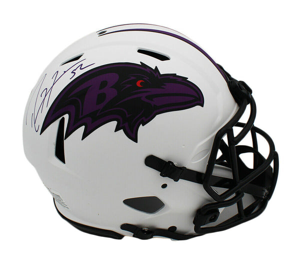 A Baltimore Ravens Speed Authentic Lunar NFL Helmet hand signed by Ray Lewis. The item and signature are in excellent condition. Ray was drafted in the NFL 1996 was in Round:1 and Pick:26. Ray 2x Super Bowl Champion in (XXXV,XLVII). Ray is a Super Bowl MVP in the (XXXV). Ray 2xNFL Defensive Player of Year (2000,2003). Ray 3x second-team ALL-Pro (1997,1998,2010). Ray 3xNFL tackles leader (1997,1999,2001). AUTHENTICATION: The item is accompanied by a Certificate of Authenticity - Serial Numbered and Databased Hologram - Picture of Ray from the Signing