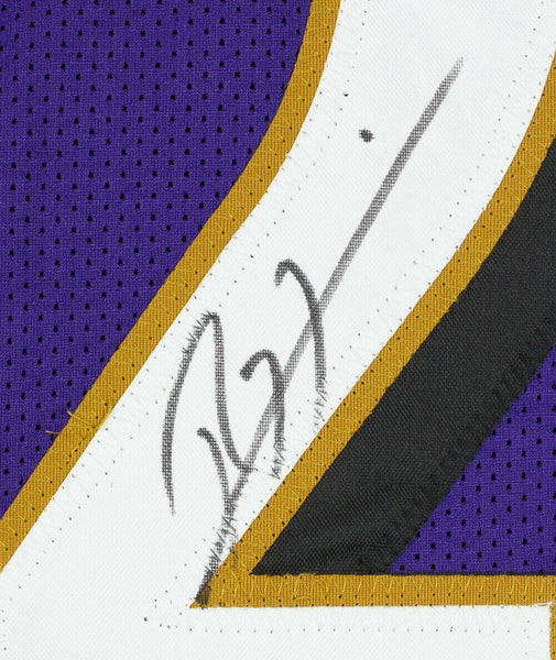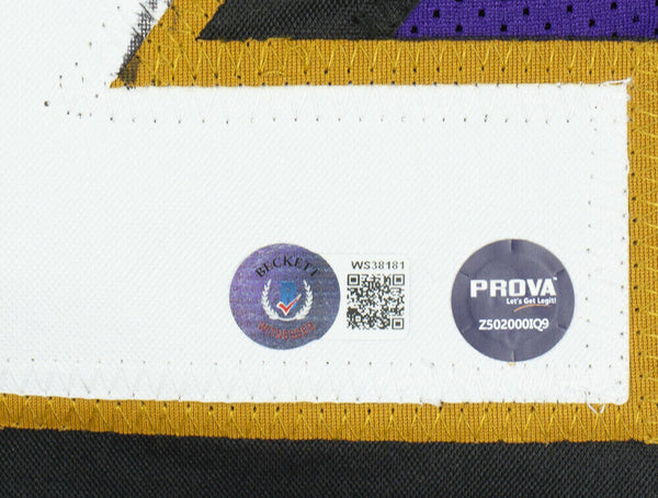 Featured is a Ray Lewis signed custom purple football jersey. This jersey was hand signed by Ray Lewis in the presence of a Beckett authentication representative. Included with the jersey is a Beckett hologram and certificate of authentication. This jersey would make a great addition to any sports memorabilia collection. This jersey has hand sewn numbers and letter and has NO logos or any affiliation with any manufacturer or team. It is simply intended as an autographed collectible.. SPECIFICATIONS Autographed By: Ray Lewis Team: Baltimore Ravens Sport: Football Authentication: Beckett Grading Services