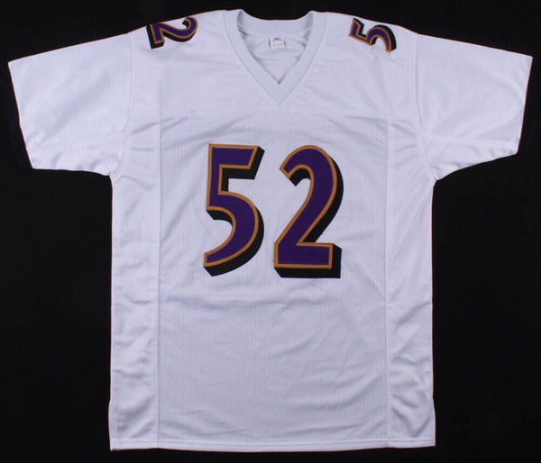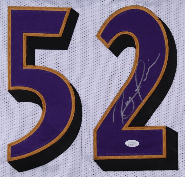 Custom on-field style jersey. Everything is sewn on, size XL. Hand-signed in silver paint pen by Ray Lewis (HOF). The lot / autograph(s) includes an official James Spence Authentication (JSA) hologram and matching COA for authenticity purposes.Authentication: JSA COA Check out all the items in our Friendly Confines Collectibles store, Thanks for looking.