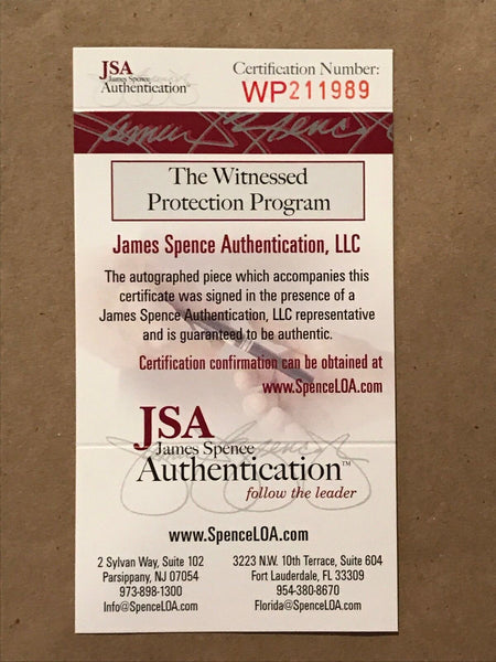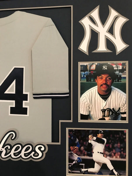 Custom Framed Reggie Jackson hand signed N.Y. Yankees custom jersey.JSA Hologram and COA(#WP211989)The authentication is from JSA. This signature is not authenticated by opinion but it is WITNESSED by a representative of JSA! 100% AUTHENTIC!!! The jersey has fully stitched numbers on the front and back. It is a great item and a must for all great sports fans!This item is professionally framed, it measures 32"x40" inside , 42"x34" outside , using UV protective Acrylic glass for safe keeping and safe transport, team color matting, black moulding and hanging hooks on the back. All additional items in frame seen in pictures included. 100% ready to hang in your fan cave.