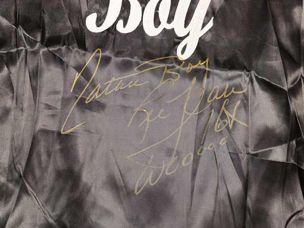 This is a Black Wrestling Robe that has been hand signed by Ric Flair. This item was inscribed "Nature Boy, 16x & Wooooo." This robe's approximate size is XL and is 38" tall. This item has been certified authentic by PSA/DNA and comes with their tamper-proof sticker and matching certificate of authenticity.