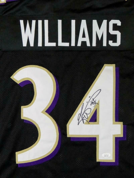 Ricky Williams Autographed Black Pro Style Jersey - JSA W Auth * THIS IS NOT AN NFL JERSEY. THIS HAS NO TAGS, NO LOGOS, NO EMBLEMS. This is a hand autographed Jersey of Ricky Williams. This is Custom Made (non name brand) Authentic Style (stitched letters and numbers). This item has a James Spence Witness Protection Authentication, which comes with a JSA numbered sticker and a matching JSA Certificaet of Authenticity. You can view this item on the SpenceLOA website and it shows when and where the item was signed. It was signed either at a public autograph appearance or a private signing. This is a stock photo of the item. Although you may not receive this exact item, the item you receive is virtually identical and brand new in great shape. Jersey size is XL.