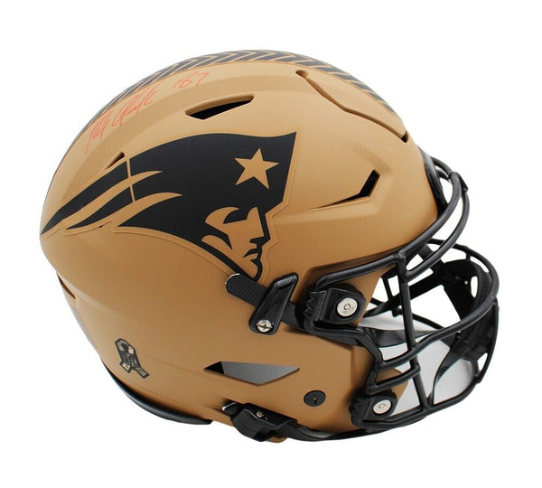 A New England Patriots Speed Flex Authentic Salute to Service 2 NFL Helmet hand signed by Rob Gronkowski. The item and signature are in excellent condition. Rob is a 5x All-Pro First Team, 5x Pro Bowler, and 2x Super Bowl Champion. AUTHENTICATION: Your item is tagged with a Rob Gronkowski exclusive SmarTag powered by Prova Technology, which gives you digital access to your items authentication records, which includes a proof picture from the signing.