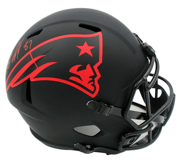 A New England Patriots Speed Replica Eclipse NFL Helmet hand signed by Rob Gronkowski. The item and signature are in excellent condition. Rob is a 5x All-Pro First Team, 5x Pro Bowler, and 2x Super Bowl Champion. AUTHENTICATION: The item is accompanied by a Certificate of Authenticity - Serial Numbered & Databased Hologram - Picture of Rob from the signing