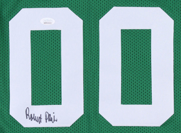 Custom on-court style jersey. Everything is sewn on, size Adult Large. Hand-signed in black felt-tip pen by Robert Parish (HOF). Parish's career highlight stats have been custom stitched onto the back of the jersey below the numbers. The lot / autograph(s) includes an official James Spence Authentication (JSA) hologram and matching COA for authenticity purposes. The signing of this item was witnessed by JSA.Authentication: JSA COA